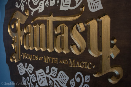 One of the screens inside the Fantasy: Worlds of Myth and Magic exhibition
