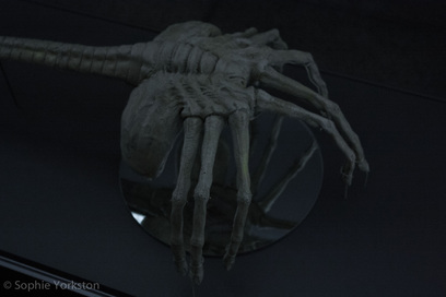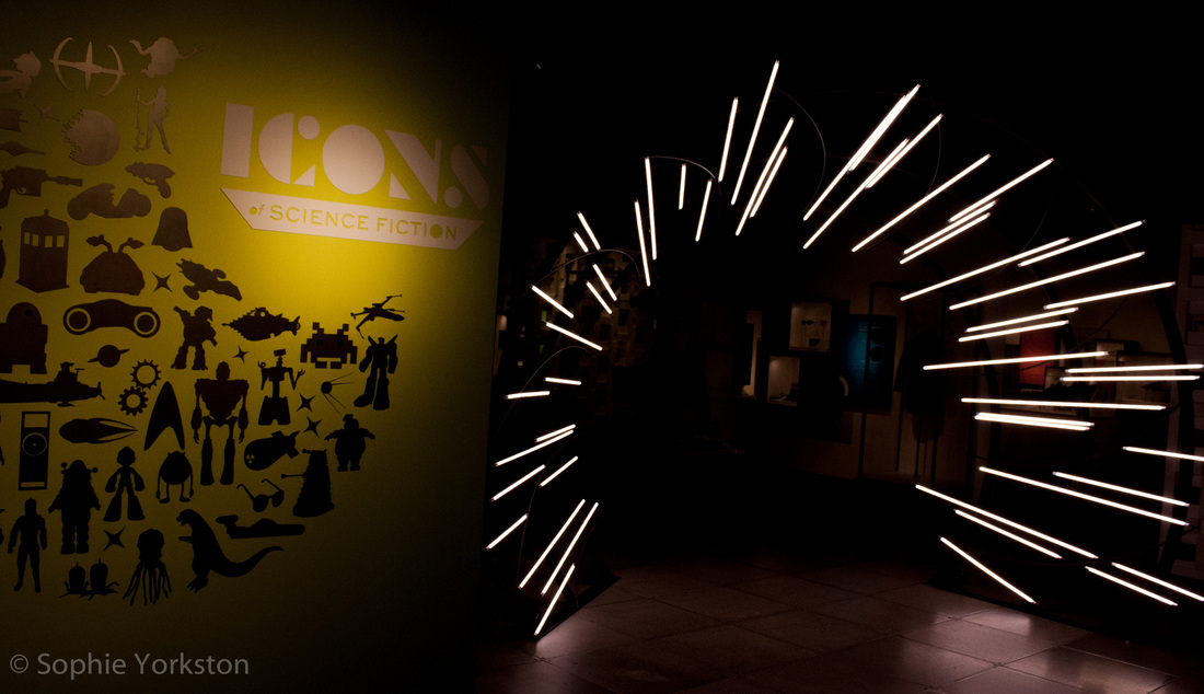 You enter Icons of Science Fiction through a tube of lights, like images of faster than light travel in movies. Some iconic pieces dominate the exhibits, particularly props from famous science fiction television shows and cinema. Kirk’s chair from Star Trek, Daleks from Doctor Who, Neo’s monk-like costume from the Matrix; props from varied shows and movies abounded. There was a green screen allowing play with multiple factors to demonstrate their use in science fiction film. One interactive tablet allowed visitors to investigate the different subgenres of science fiction, but it had a limited number of examples programmed in to link to. Sadly, the exhibit was smaller than I thought it should be, and had less detail and discussion of the science fiction genre in general.
